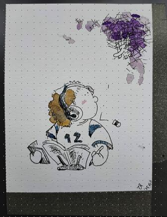 勉強中…上から落ちてきたのは…?をほっこりタッチの透明水彩で描いた一点ものイラスト。
